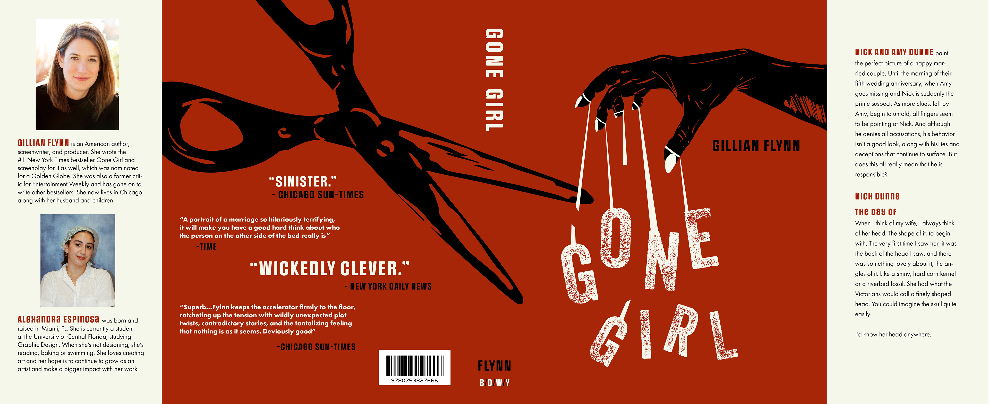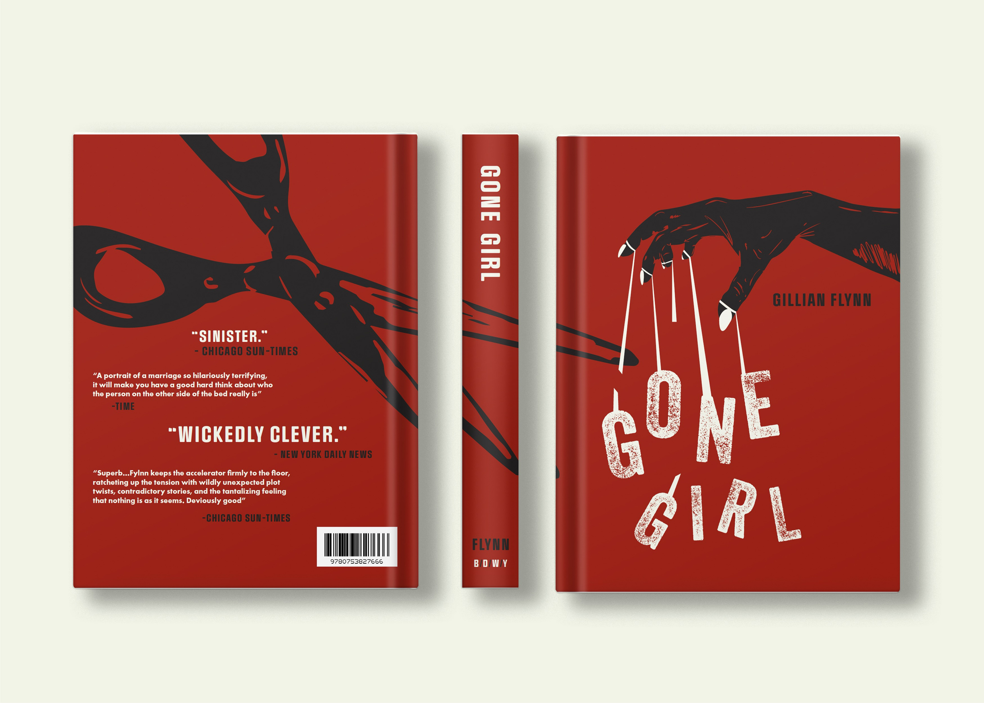 Re-Design for Gone Girl by Gillian Flynn. I wanted to play into the thriller aspect of this story to create this illustrative cover, hinting towards this complex story.